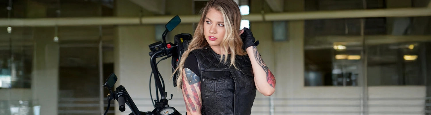 Blue Viper Women's Club Style Leather Motorcycle Vest - Limited Edition