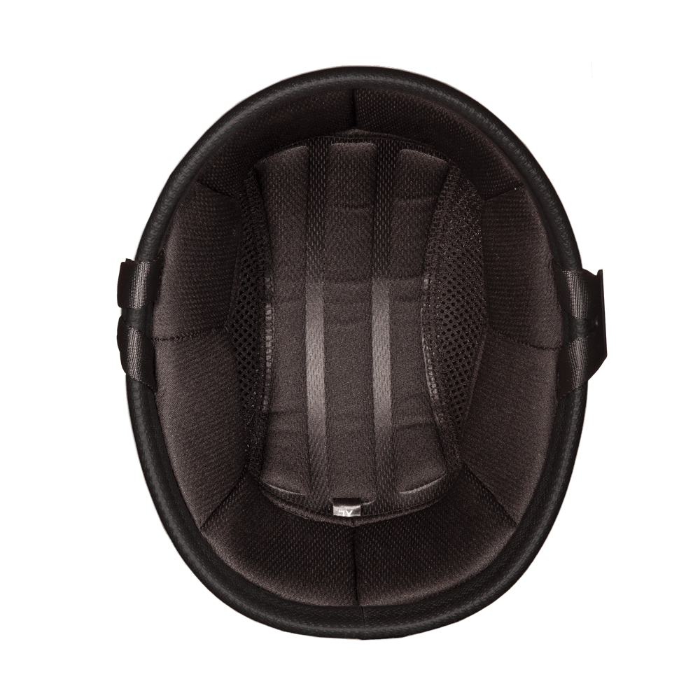 • Forward Positioned Nylon Y-Strap Retention System With Sliding Adjuster For Fine Adjustments.  Does Not Interfere With Your Ears; Seams Sewn To The Outside And No Facial Chaffing.