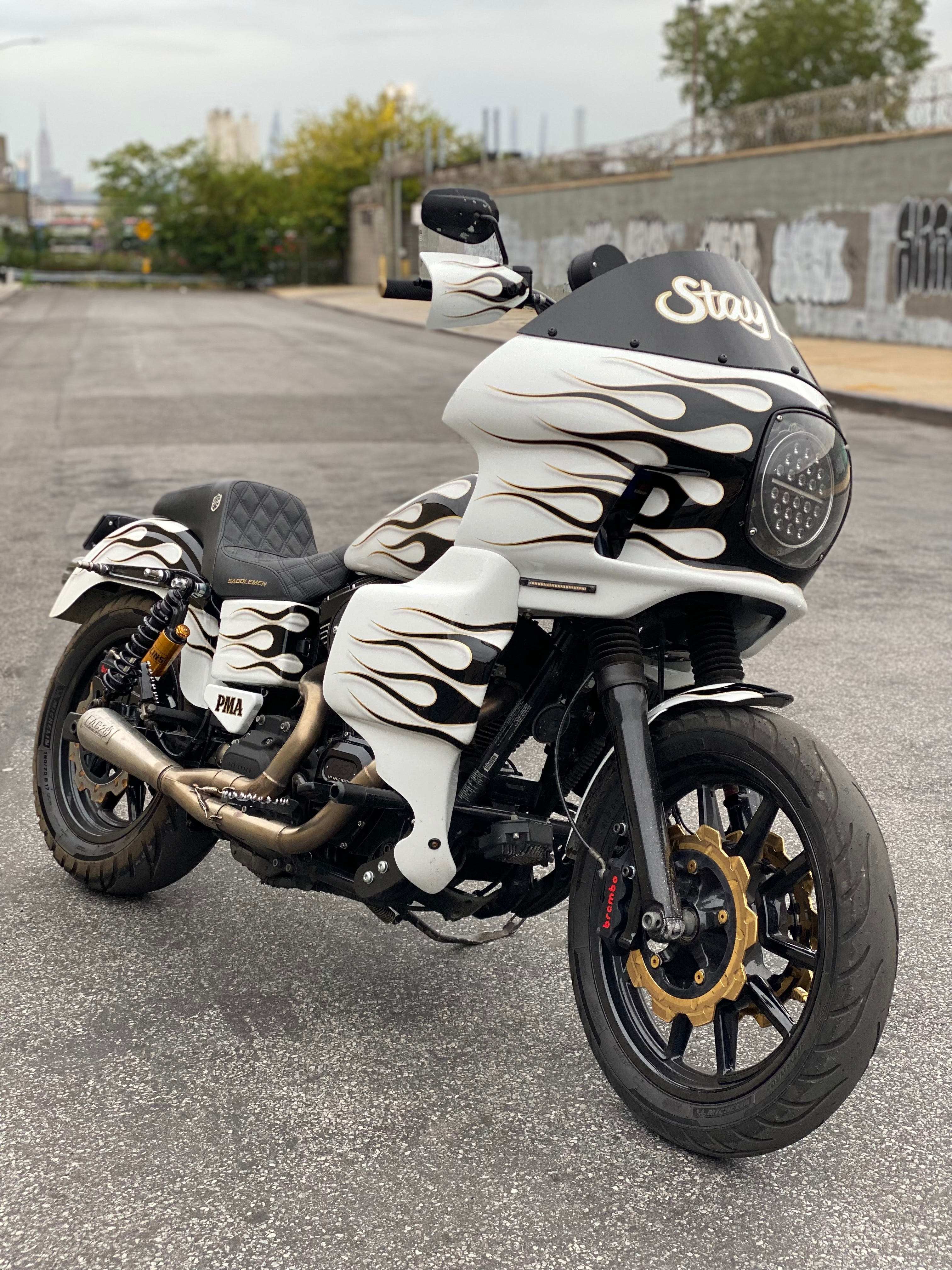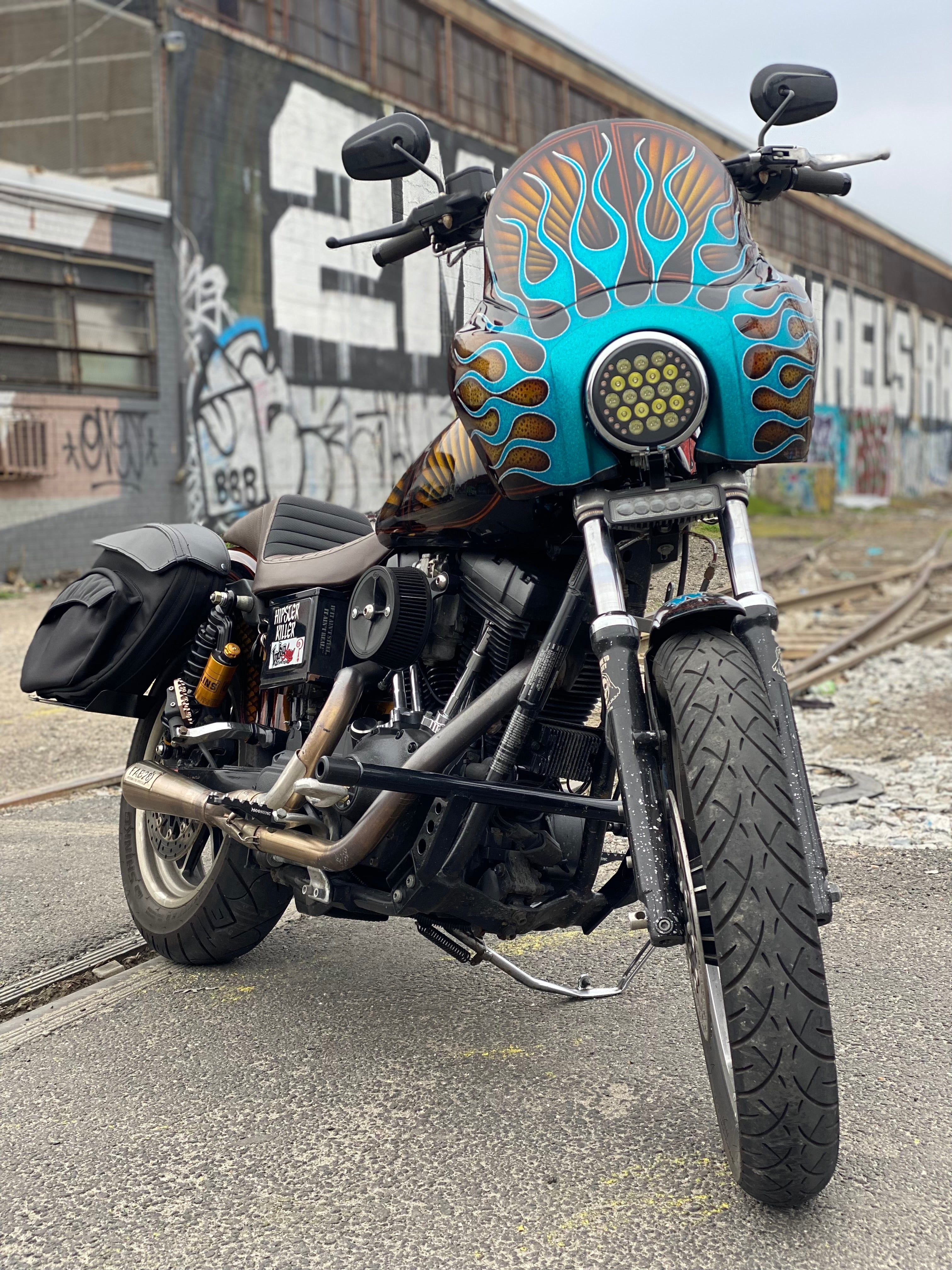 Originally built by Peter Gunz, this bike is also arguably one of the best years and models of the entire Dyna line. Coming in with a classic New York Dyna build, a style pushed forward by Peter Gunz, this bike is built to bob and weave with the New York chaos, while still being able to hold its own on the highway. To quote the legendary visionary himself: “If it’s from New York, it’s gotta have flames.”