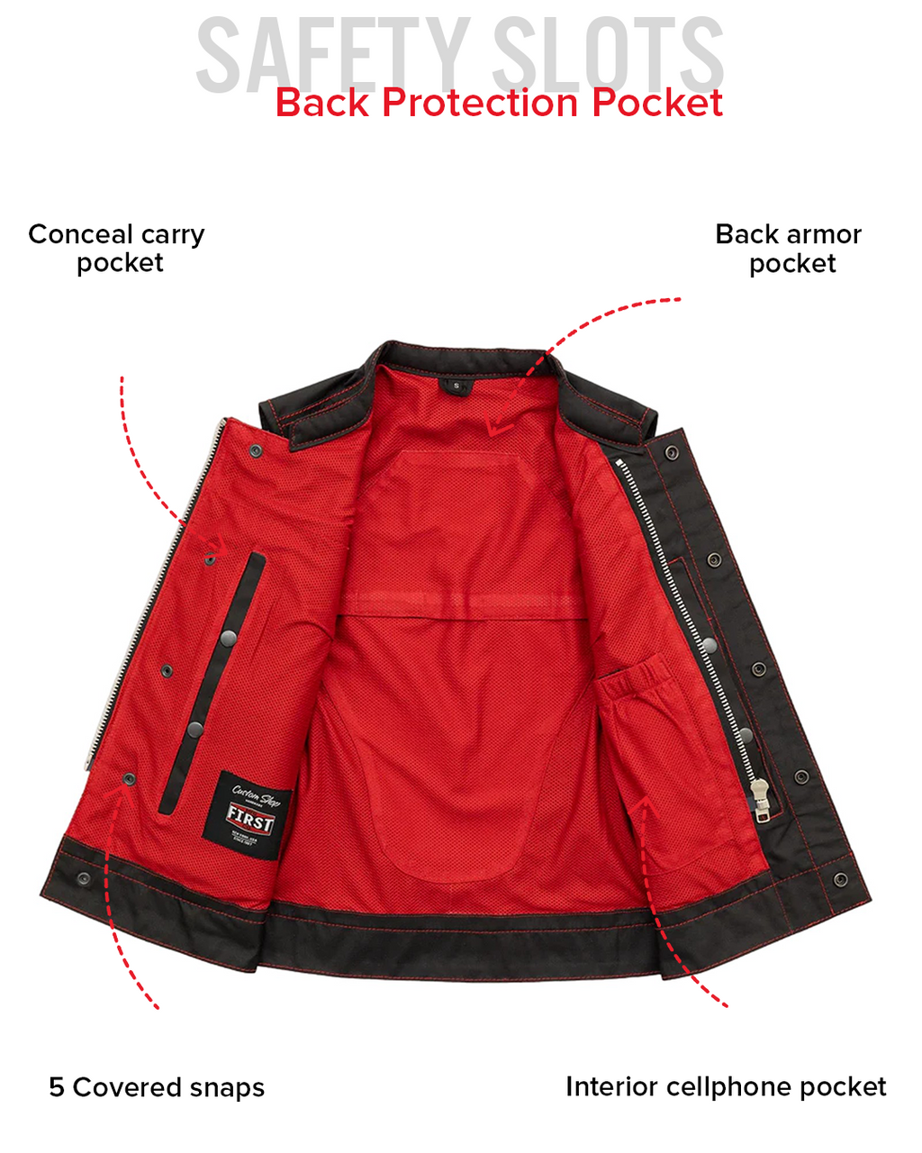 This isn't your normal club style vest - It's crafted using our all new Moto Mesh material in a club style with one-inch collar, covered snaps and a hidden, cropped center zipper for more comfort while seated on your motorcycle. The Moto Mesh and Cordura fabrics are much lighter than our traditional vests and provide an amazing amount of airflow for the warmer months.