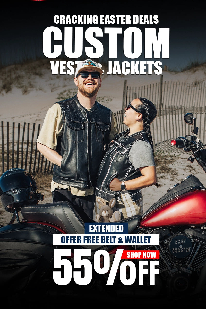 A personalized biker vest doesn't have to be one color head to toe. Accents let you break things up and assign different shades to pockets, collars, armbands, or cuffs. Picture a black custom leather biker jacket with tan pockets and a matching collar. Or dark brown with black trim throughout. These details separate your custom biker gear from everything hanging on store racks available for everyone.